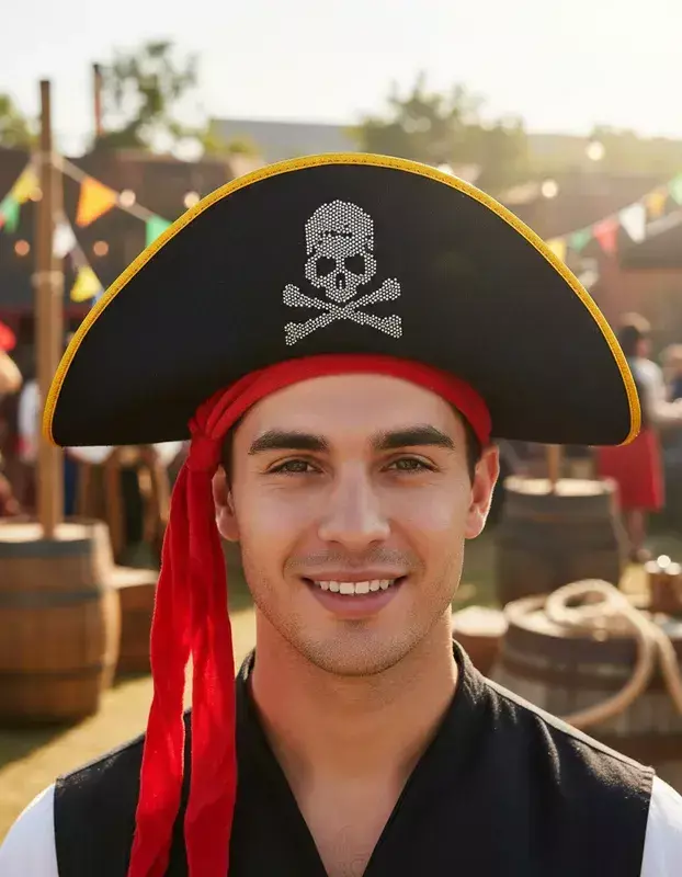 Producto: Sombrero Pirata con Calavera strass y cinta roja